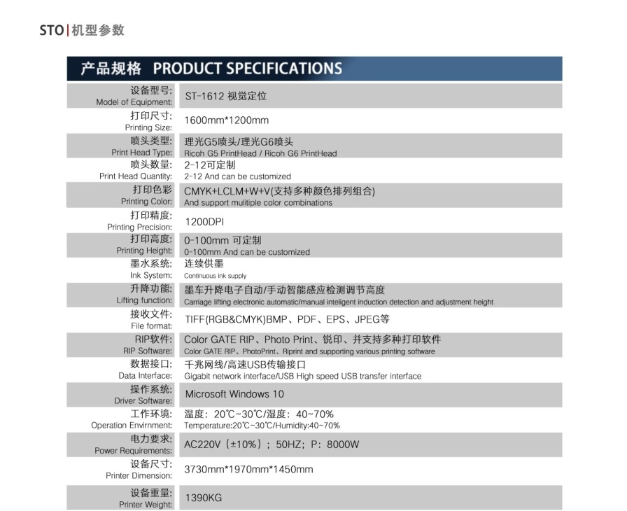 型號:ST-1612視覺定位UV打印機